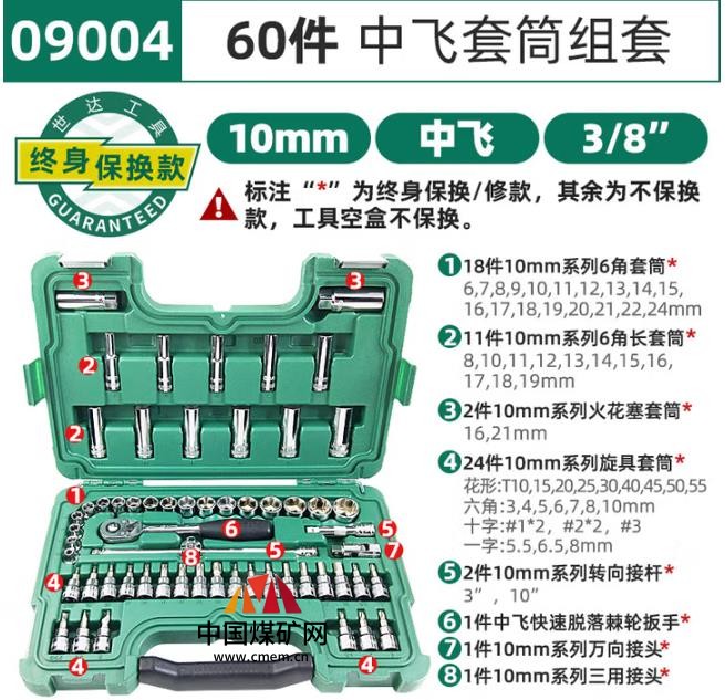 世达(SATA)60件套10MM棘轮扳手套筒组套 09004