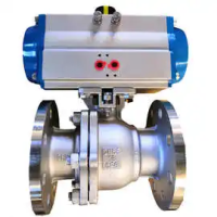 气动法兰球阀,采用了防火、防静电、阀杆防爆出装置技术,可适用多种恶劣场合选型。采用的气动执行器与球阀一体式连接,无需另装支架,减少了因安装连接引起的质量问题,同时也为厂区密密麻麻的设备节约了空间。