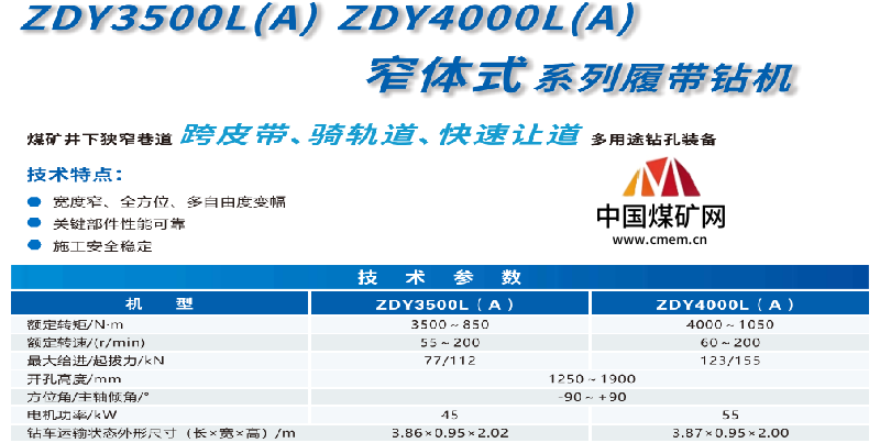 中煤科工西安研究院ZDY3500L(A)/ZDY4000L(A)窄体式系列履带钻机租赁服务。