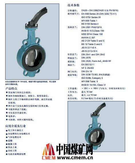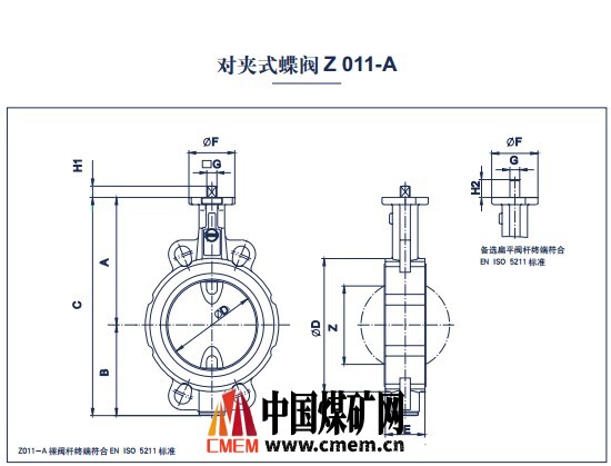 Z011-A型蝶阀采用人造橡胶,适用于多种工业场合。带手柄或手动涡轮,气动或电动执行器。半耳式阀体(T2),全耳式阀体(T4)带凸面法兰,压力PN 10/16。